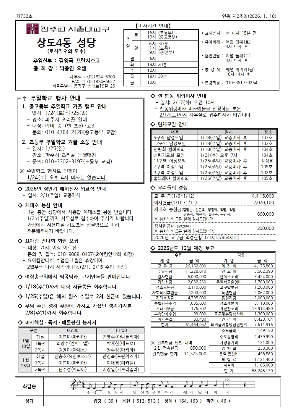 주 보 서울주보 상도4동 본당 지면 서울 주보 바로가기 제732호 2026. 01. 18 연중 제2주일 작성자 상도4동성당 작성일 2026-01-18 10:08 조회 167 좋아요 0 싫어요 0 인쇄 « 제731호 2026. 01. 11 주님 세례 축일 제733호 2026. 01. 25 연중 제3주일/해외원조주일 » 목록보기 Powered by KBoard 관리자 로그인